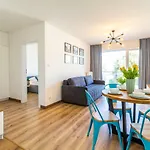 Apartamenty Nawigator W Kolobrzegu comprende un balcone, un bar sulla terrazza e un salottino con un divano, oltre a comfort moderni come una TV a schermo piatto con canali satellitari. I servizi di sicurezza in camera includono rilevatori di fumo e una chiave elettronica. I bagni sono dotati di una cabina doccia e un bagno alla francese. Inoltre, ci sono un set di cortesia e teli da bagno.